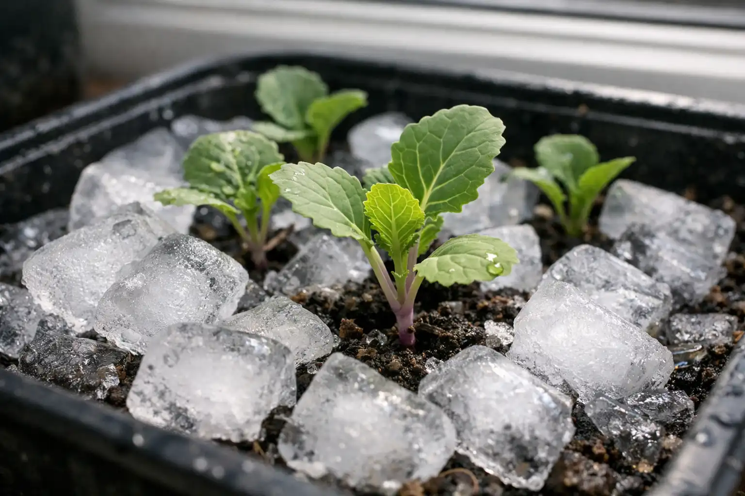 Mana slepenā nianse: ja stādi sāk gulēt, nepiepildiet tos ar ūdeni. Vispirms noēnojiet logu ar parastu baltu papīru un pārklājiet podus ar ledus gabaliņiem – tas radīs nepieciešamo temperatūras triecienu, kas liks augam savus spēkus virzīt uz saknēm, nevis uz augšanu.