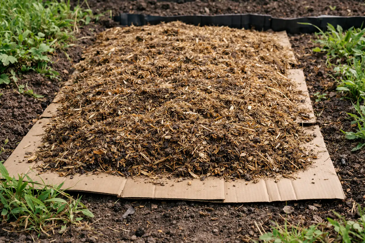 Slepenā nianse: ja zem kartona pievienosiet plānu kārtiņu svaiga komposta, augsnes baktēriju aktīvas darbības dēļ nezāļu sakņu sadalīšanās process dubultosies.