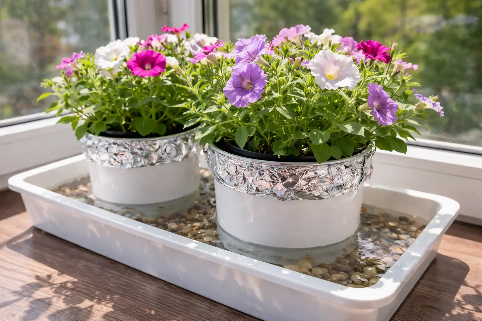 Pareizi temperatūras apstākļi un mitruma kontrole garantē sulīgu petūniju ziedēšanu visas sezonas garumā.