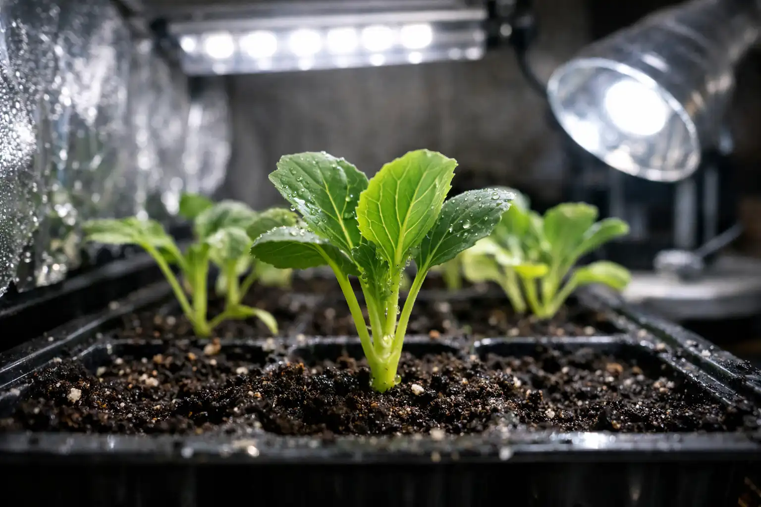Pareizs apgaismojums un temperatūras kontrole nodrošina spēcīgus stādus agrīnai ražas novākšanai.
