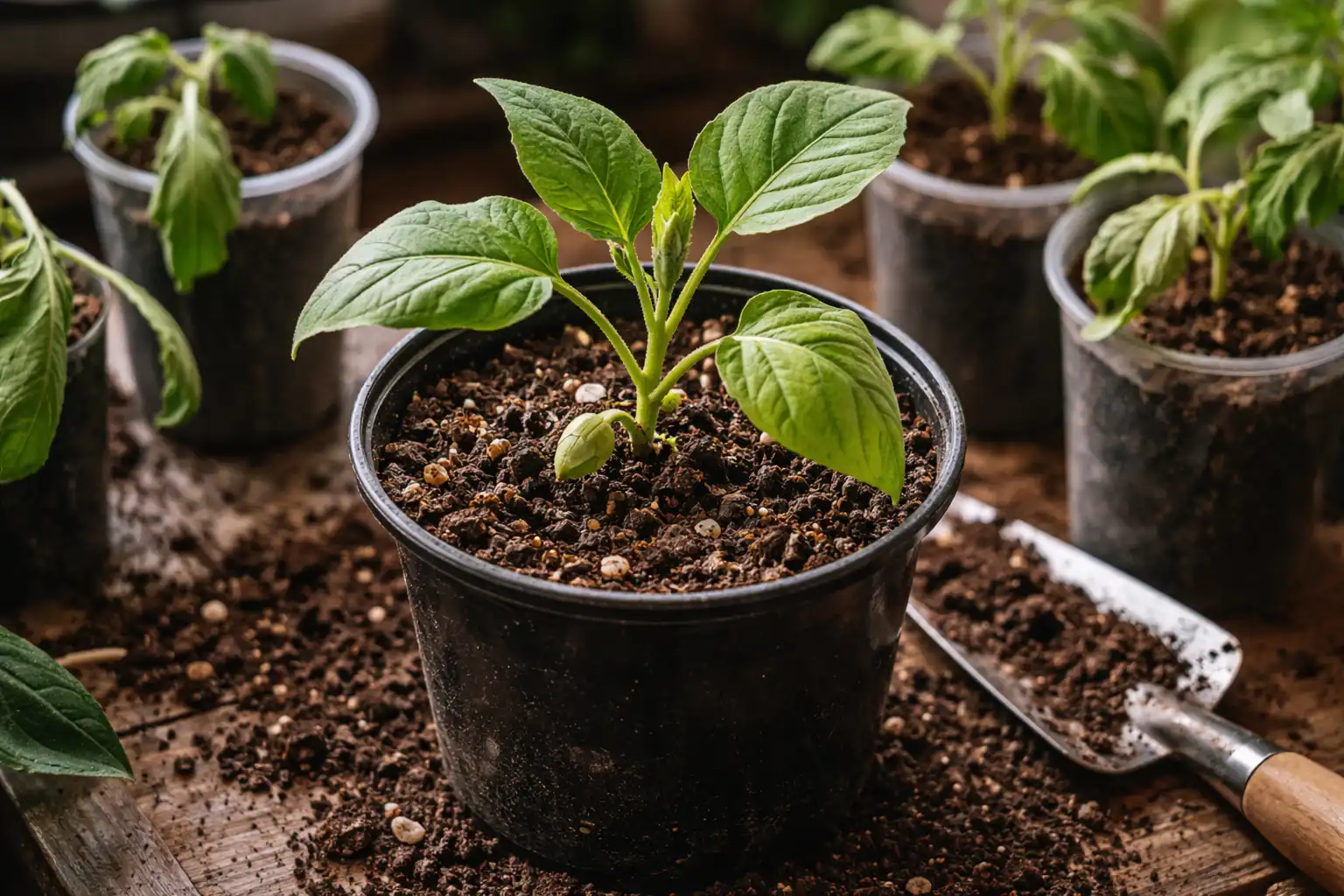Nelielā traukā augsne izžūst dažu stundu laikā, kas kaitē liellapu baklažāniem.