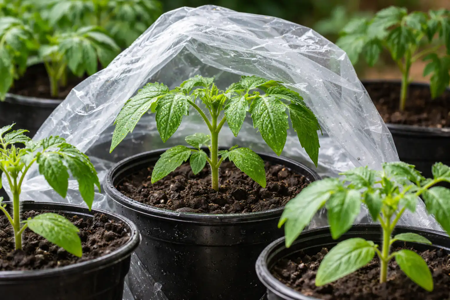 Izveidojiet mākslīgo siltumnīcu, izmantojot caurspīdīgu vāku.