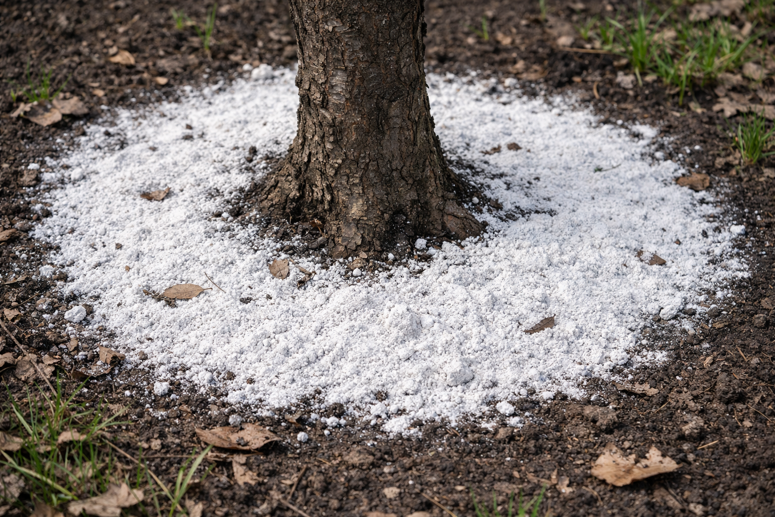 Galvenais lietošanas noslēpums: uzklājiet pulveri tikai gar vainaga projekciju, kur atrodas aktīvās sūkšanas saknes, un nelejiet to tieši uz koka stumbra.