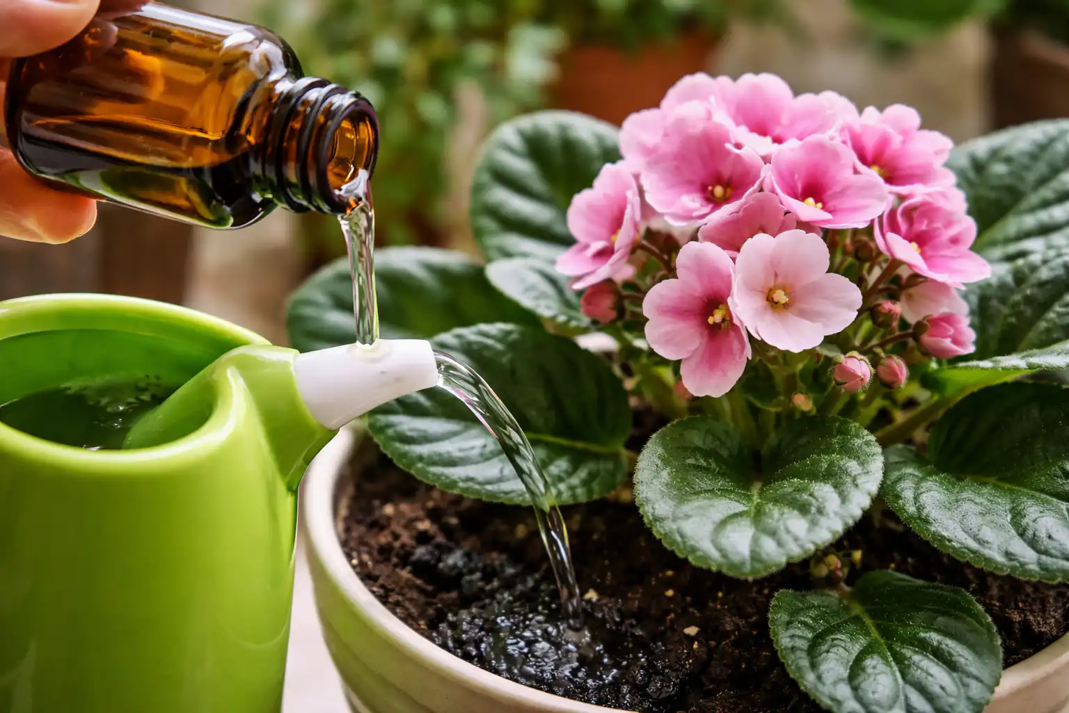 Izsmidzināšana ir atļauta tikai ļoti vājā koncentrācijā, lai pasargātu no laputīm, un ir svarīgi izvairīties no mitruma nokļūšanas uz ziedošajiem pumpuriem.
