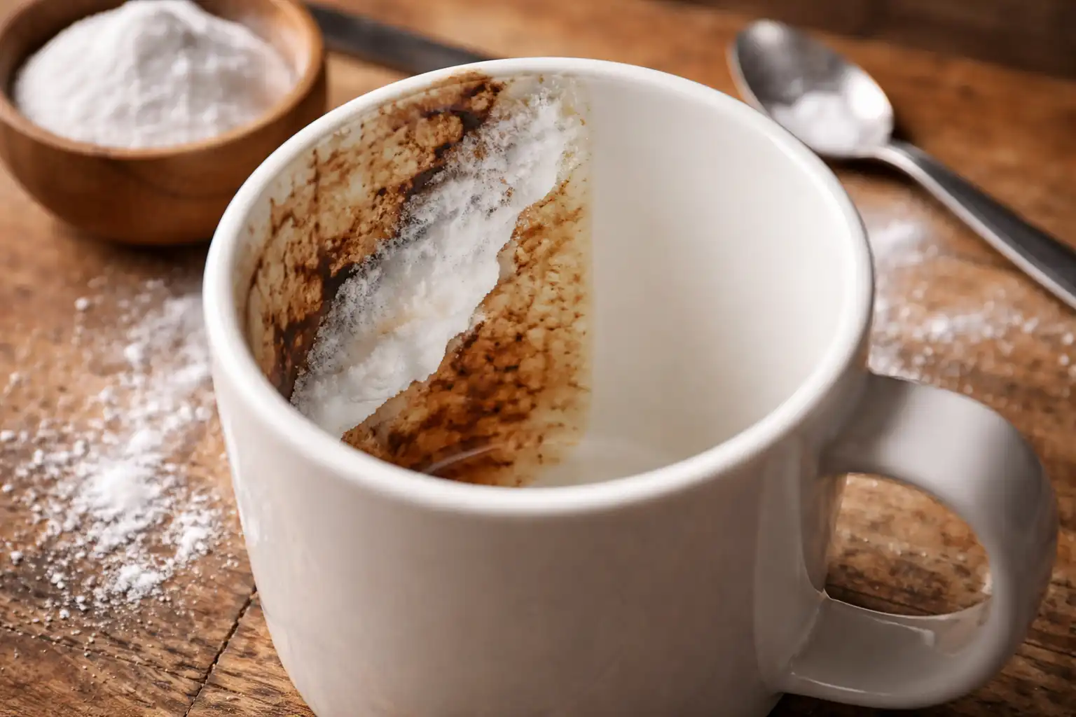 Ideālas tīrības noslēpums slēpjas agresīvu ķīmisko vielu noraidīšanā. Miecvielu traipi – stiprajos dzērienos atrodamās dabiskās krāsvielas – dziļi iekļūst materiāla porainajā struktūrā. Izmantojot skarbas ķīmiskās vielas, var sabojāt glazūru, tāpēc es vienmēr izmantoju pārbaudītu produktu, kas ir pārbaudīts gadu gaitā. cepamā soda. Šis mīkstais abrazīvs izšķīdina aplikumu, neradot mikroskrāpējumus.