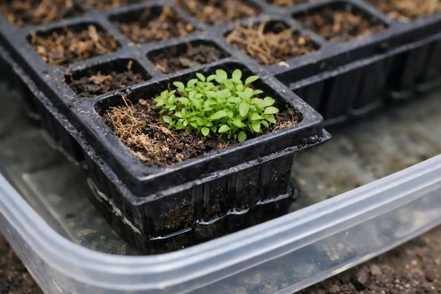 Ziedu audzēšanai no mazām sēklām ir nepieciešama precīza precizitāte. Kad kūdras substrāts mazās šūnās tas izžūst vismaz vienu reizi, plānākās sūkšanas saknes mirst uzreiz. Problēmu saasina sausais gaiss no radiatoriem un pārāk spoža pavasara saule uz palodzes.