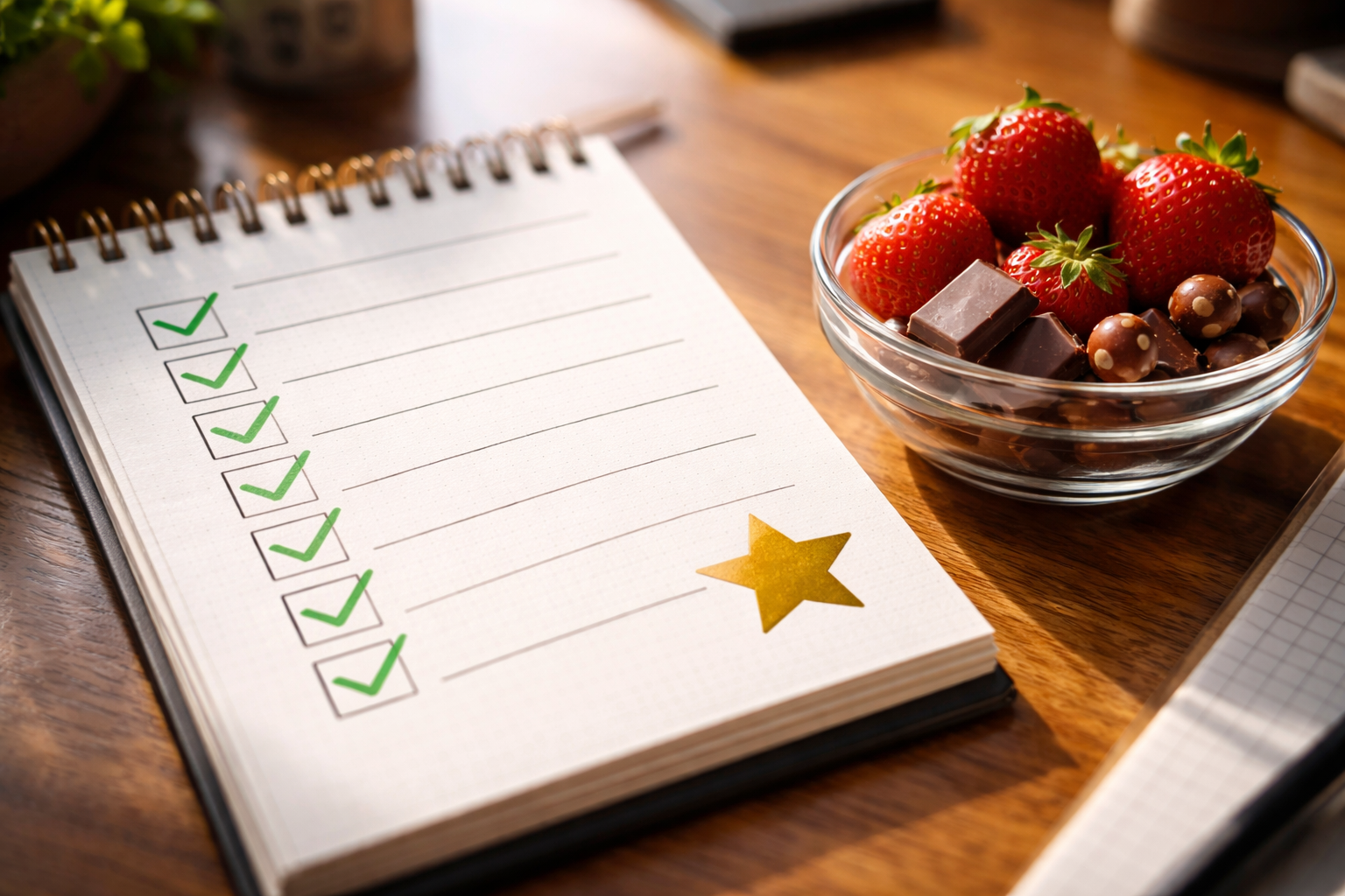Noslēpums ir nodrošināt, lai atlīdzība nekad nebūtu pretrunā ar jūsu sākotnējo mērķi. Ir absurdi apbalvot sevi ar milzīgu kūkas gabalu pēc intensīva treniņa sporta zālē; daudz efektīvāk ir izvēlēties relaksējošu karstu vannu ar ēteriskajām eļļām.