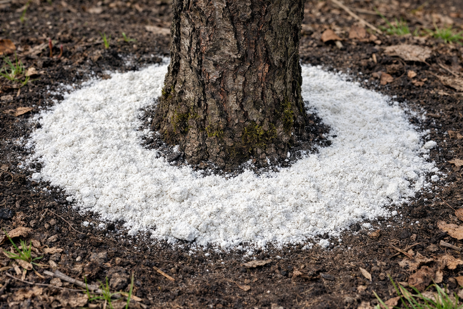 Vienmērīgi apkaisa minerālu pulveri pa visu sakņu sistēmas perimetru