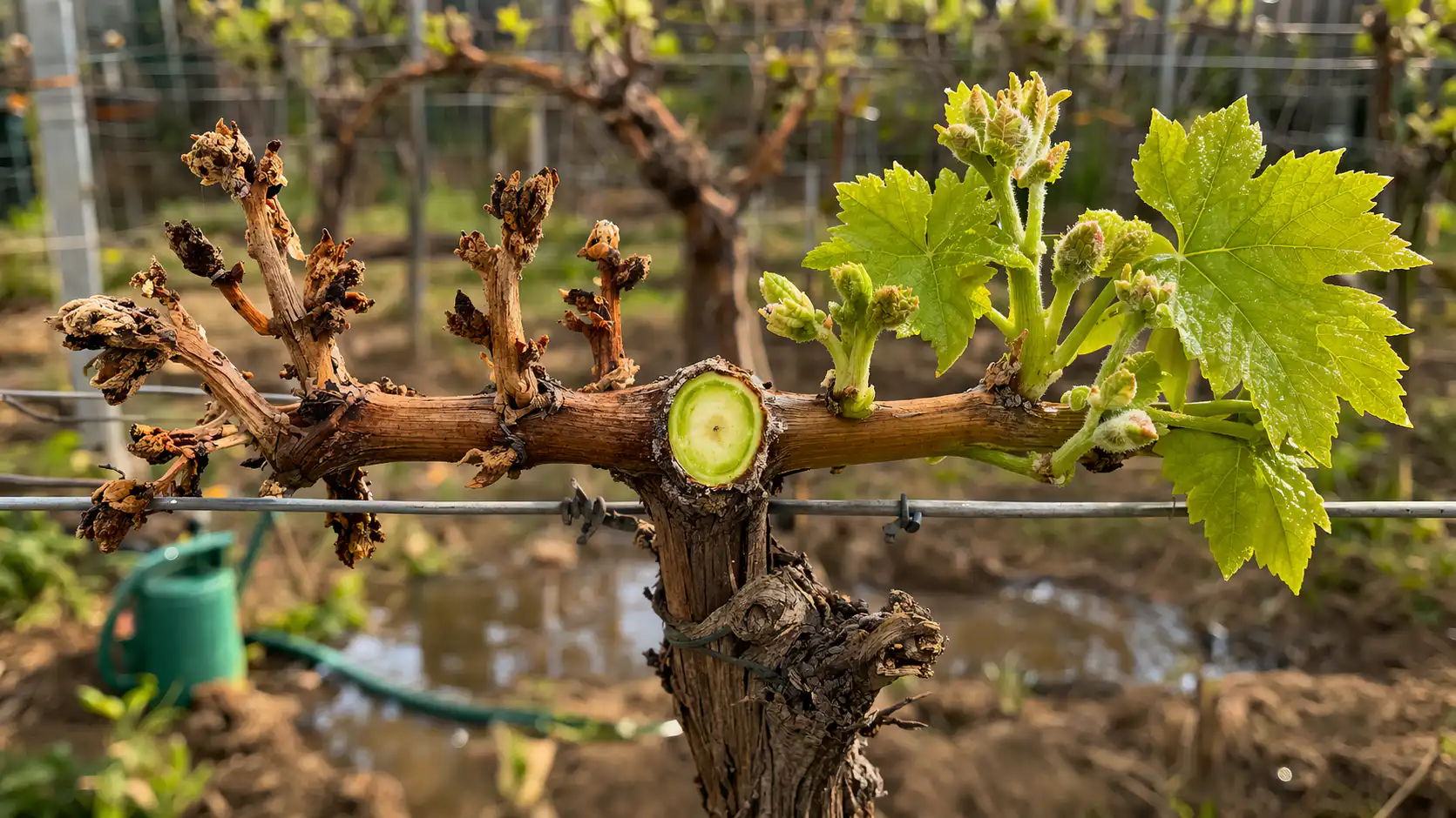 Kad viņi trāpīja pavasara atgriešanās salspirmais, kas mirst centrālās nieres – tas, kas ražo lielākos un veselīgākos ķekarus. Daudzi vīnkopji krīt panikā un sāk griezt vīnogulāju pie saknēm, nezinot, ka daba augā ir iestrādājusi spēcīgu apdrošināšanas mehānismu. Vīnogas var atgūties, ja tās tiek pienācīgi stimulētas nomaiņas nieres Un stūra acis.