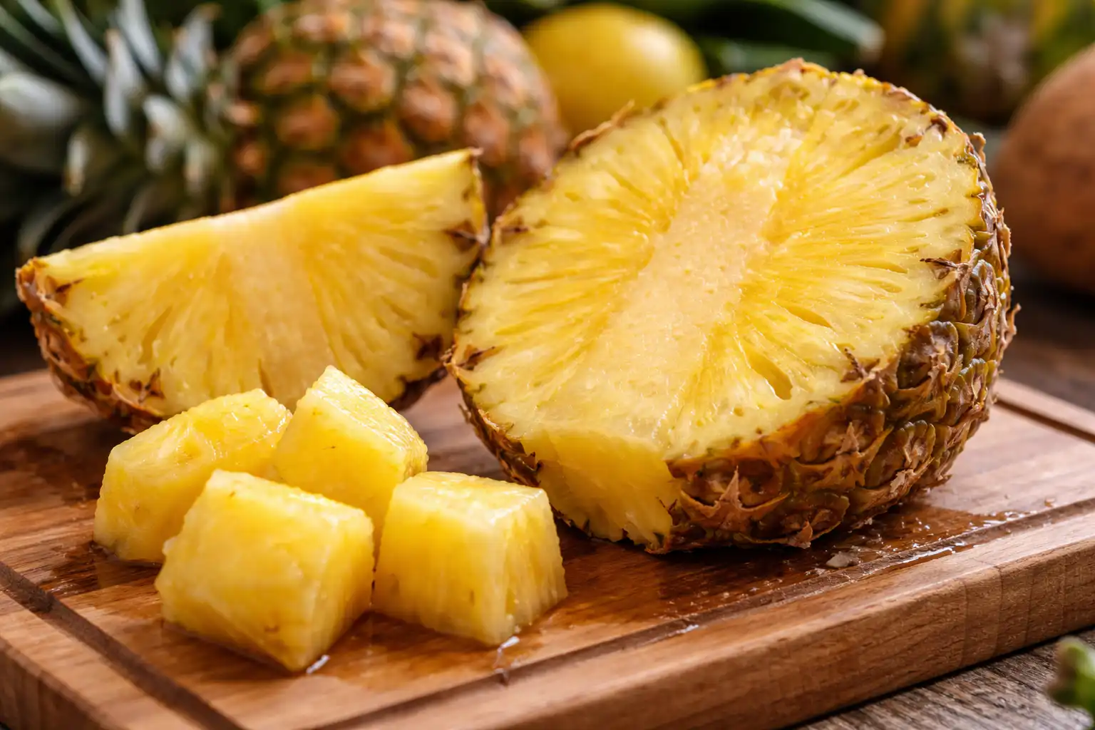 Šī spilgtā augļa galvenā vērtība ir unikālas vielas augstajā koncentrācijā. Bromelīns ir augu proteolītisks enzīms, kas uzreiz sadala sarežģītus olbaltumvielu savienojumus vienkāršās aminoskābēs. Ja esat apēdis lielu porciju gaļas, dažas šķēles svaiga ananāsa palīdzēs jūsu vēderam tikt galā ar slodzi bez vēdera uzpūšanās un diskomforta.