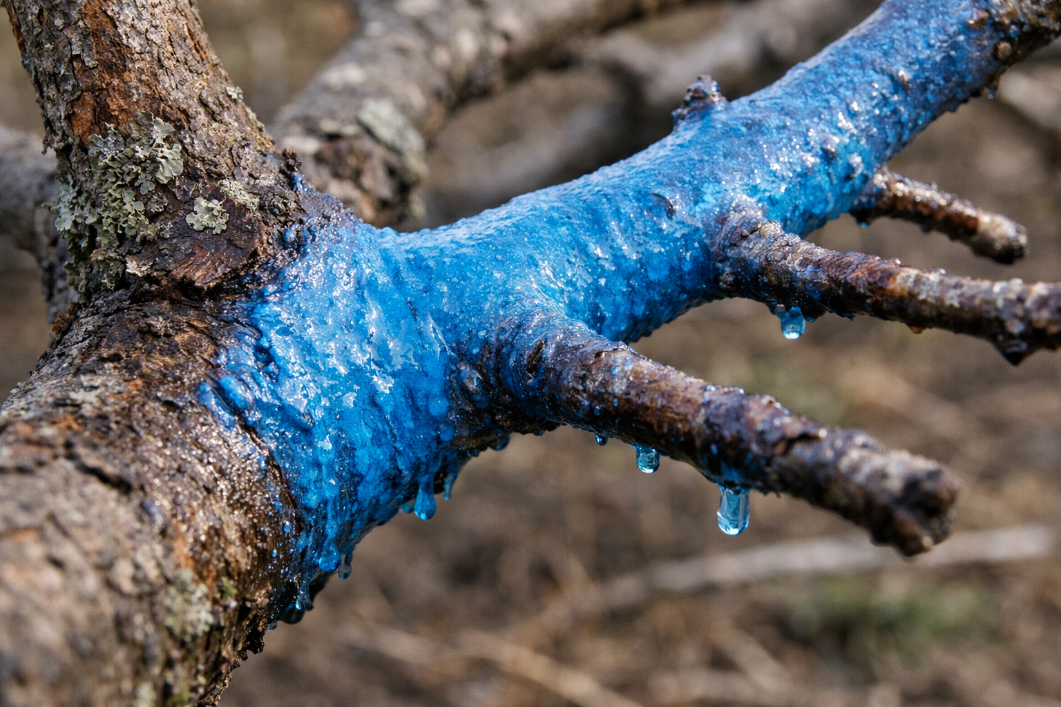 Pareizi uzklāta kompozīcija veido vienmērīgu zilganu plēvi, kas droši bloķē jebkādus sēnīšu sporu mēģinājumus iekļūt augu audos.