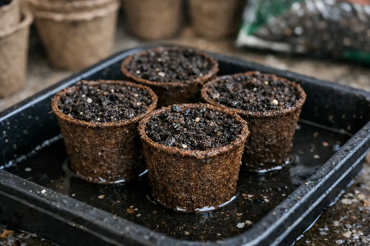 Slepena nianse: pirms iepildīšanas ar augsni tukšos traukus noteikti uz dažām minūtēm iemērc vājā biofungicīda šķīdumā vai vismaz siltā ūdenī, lai tie būtu piesātināti ar mitrumu un pārstātu konkurēt ar sēklām.