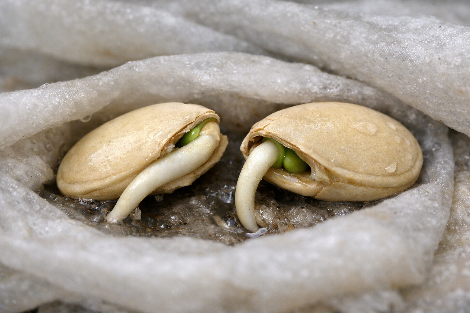 Slepena nianse: sēklas pāris dienas jākarsē uz radiatora pirms mērcēšanas mitrā drānā, tas vairākas reizes ātrāk pamodina to augšanas enerģiju.
