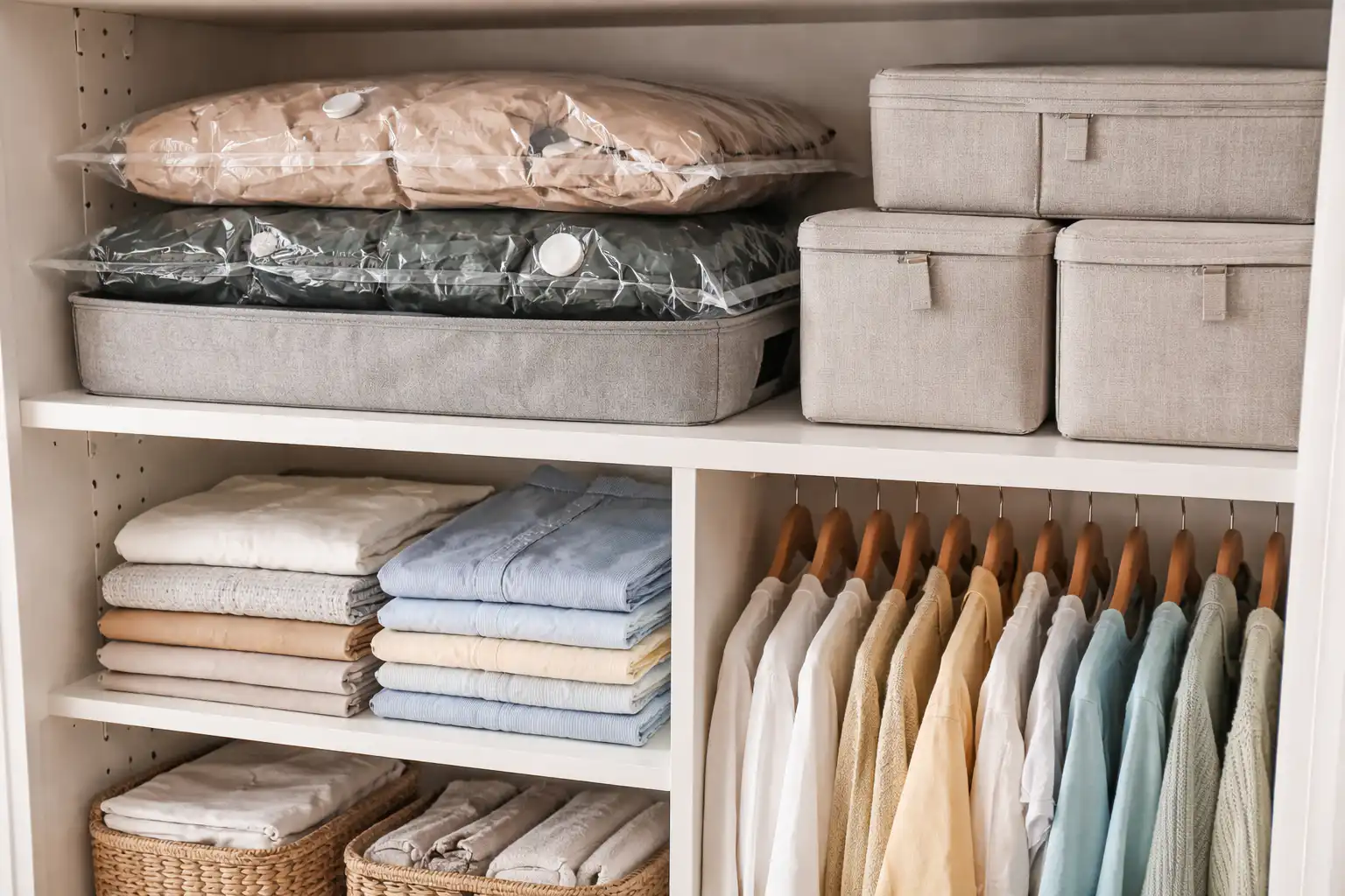 Lielgabarīta dūnu jakām un biezām segām izmantojiet vakuuma maisiņus