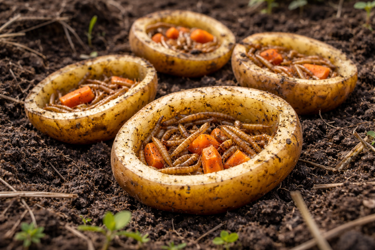 Slepenā nianse slēpjas stiepļu tārpa mīlestībā pret trūdošo sakņu kultūru saldo smaržu, tāpēc nedēļu pirms stādīšanas aprakti biešu vai burkānu gabali vienā punktā savāks lielāko daļu kaitēkļu.