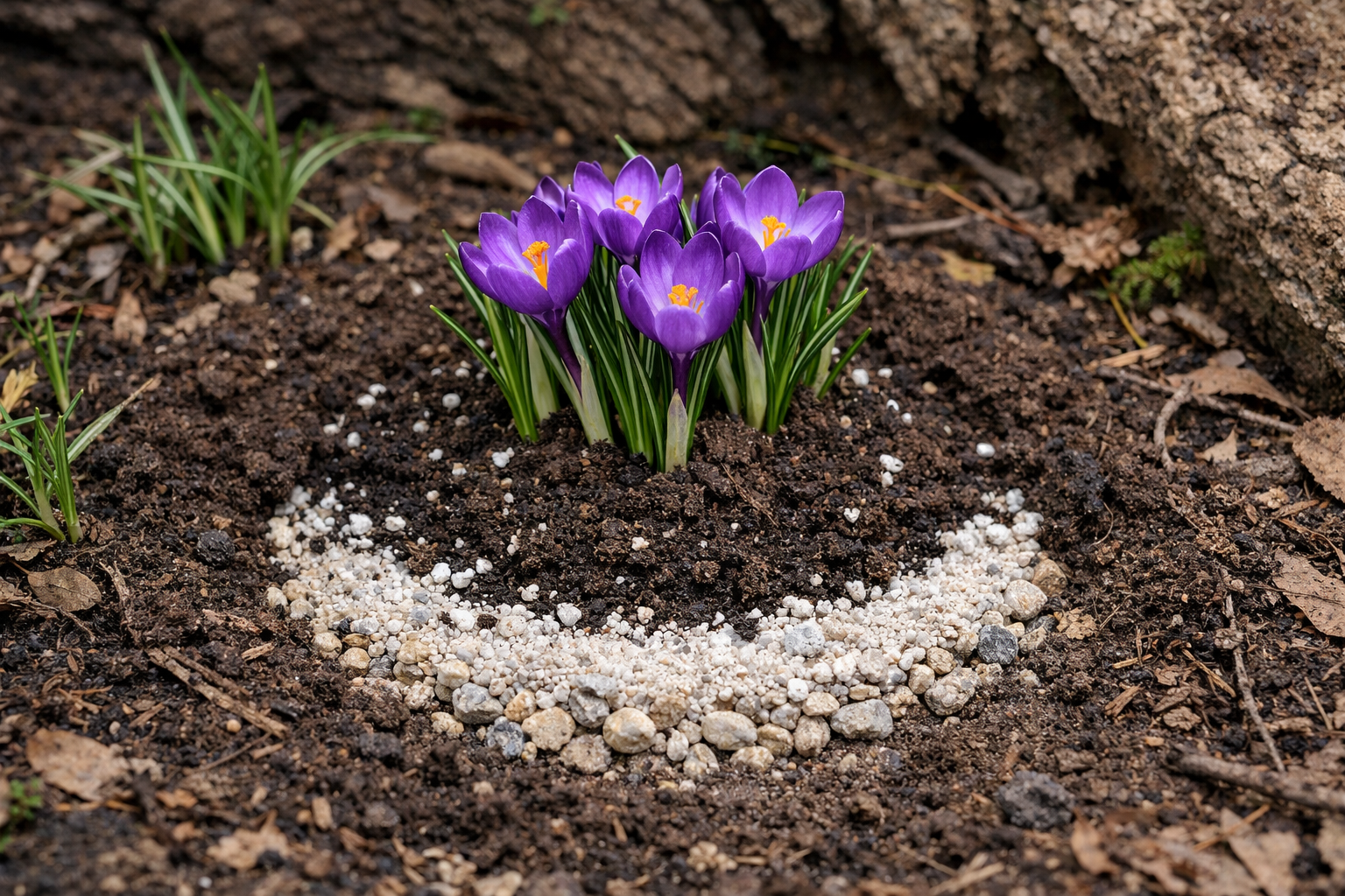 Kālija-fosfora mēslošanas līdzekļu lietošana tieši virs kūstošā sniega palīdzēs augam izveidot spēcīgāku sakņu sistēmu.