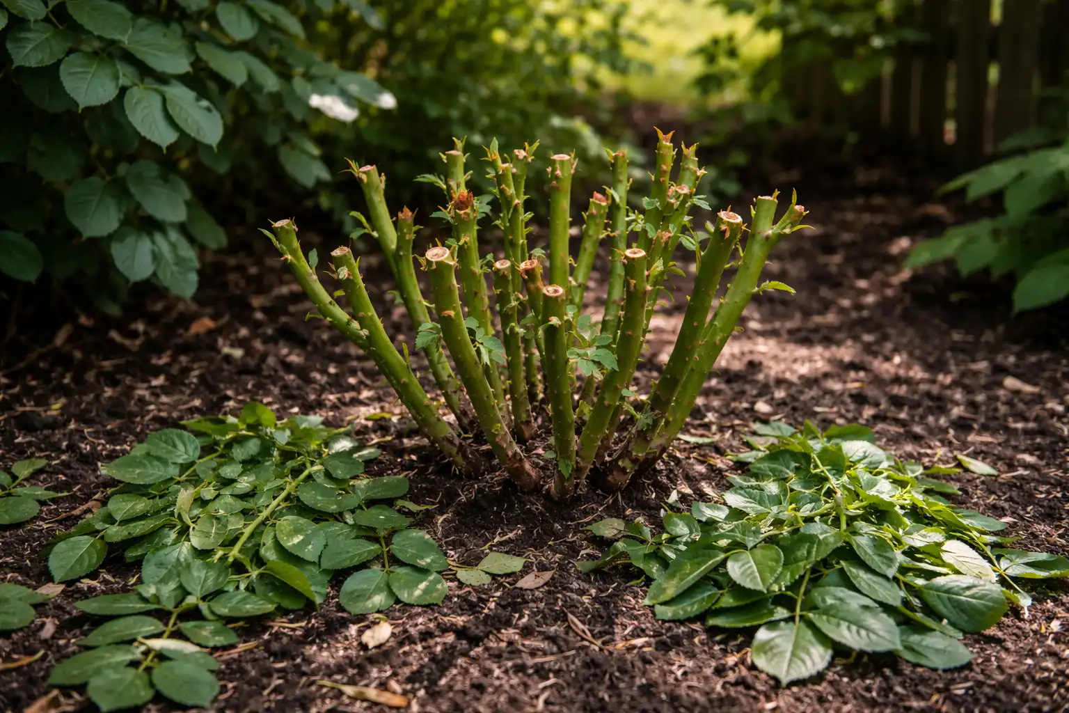 Galvenā slepenā nianse: rozēm ēnā absolūti nevajadzētu dot klasisko pavasara slāpekļa devu, jo tas izraisīs spēcīgu galotņu augšanu, kaitējot jebkādai iespējai veidot ziedu pumpurus.