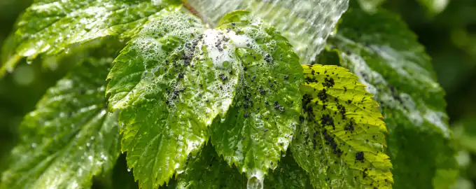 Saritinātas lapas un lipīgs viburnum pārklājums ir droša zīme, ka krūmam uzbrūk melnās laputis. Ja jūs tagad nerīkosities, jūs zaudēsiet ne tikai dārza