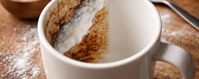 Jūsu iecienītākā krūze ir pārklāta ar noturīgu tumšu pārklājumu, ko nevar noņemt pat ciets sūklis un trauku mazgāšanas līdzeklis. Aizmirstiet par traipu