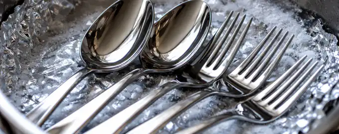 Aptumšotas karotes un aplikums starp dakšu zariem sabojā izskatu pat visdārgākajiem traukiem, bet agresīvas ķimikālijas bieži bojā metālu.